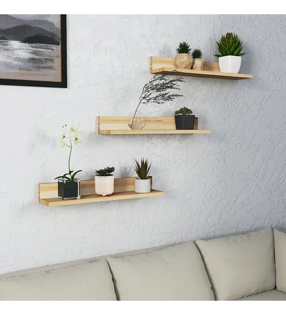 Natural Wood Decorative 3 Wall Shelves Material: Wood Width: 24 inch Height 4 inch Depth: 5 inch Model WL418