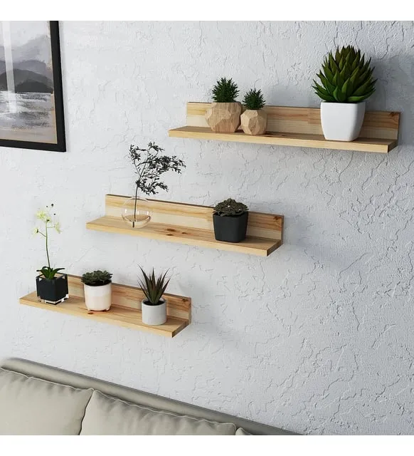 Specifications of Natural Wood Decorative 3 Wall Shelves Material: Wood Width: 24 inch Height 4 inch Depth: 5 inch Model WL418